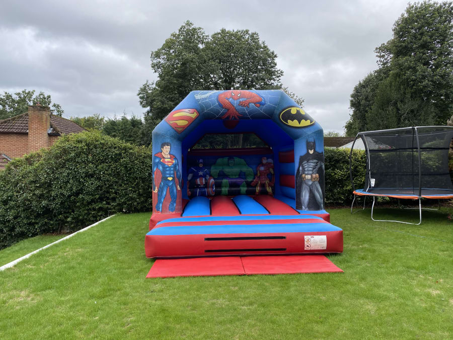 Here is our amazing superhero castle Bring your party to life with our Superhero Bouncy Castle – the perfect inflatable for little heroes and action fans! Featuring bold, colourful superhero artwork and an exciting design, this bouncy castle is guaranteed to be a hit at birthday parties, school events, and fun days.