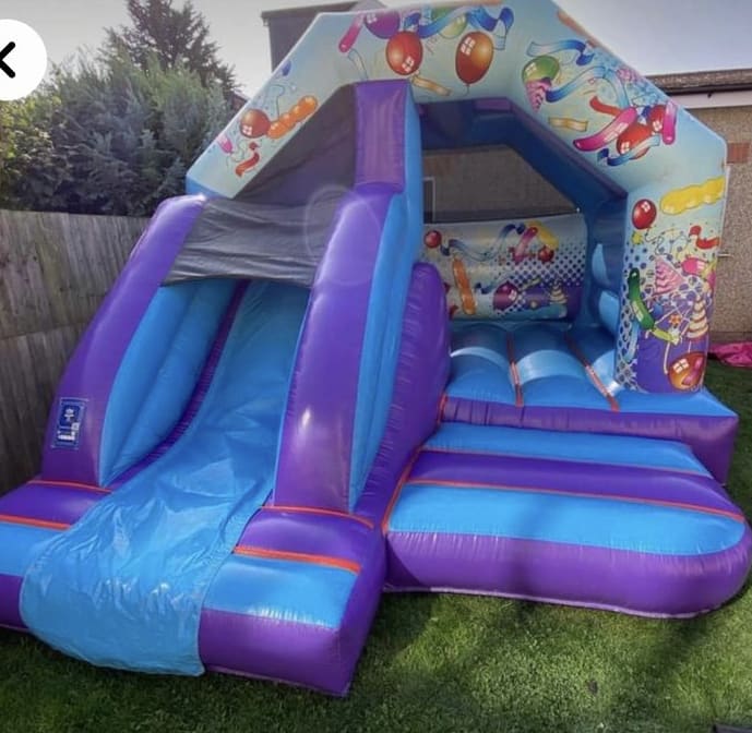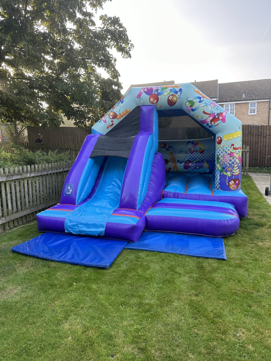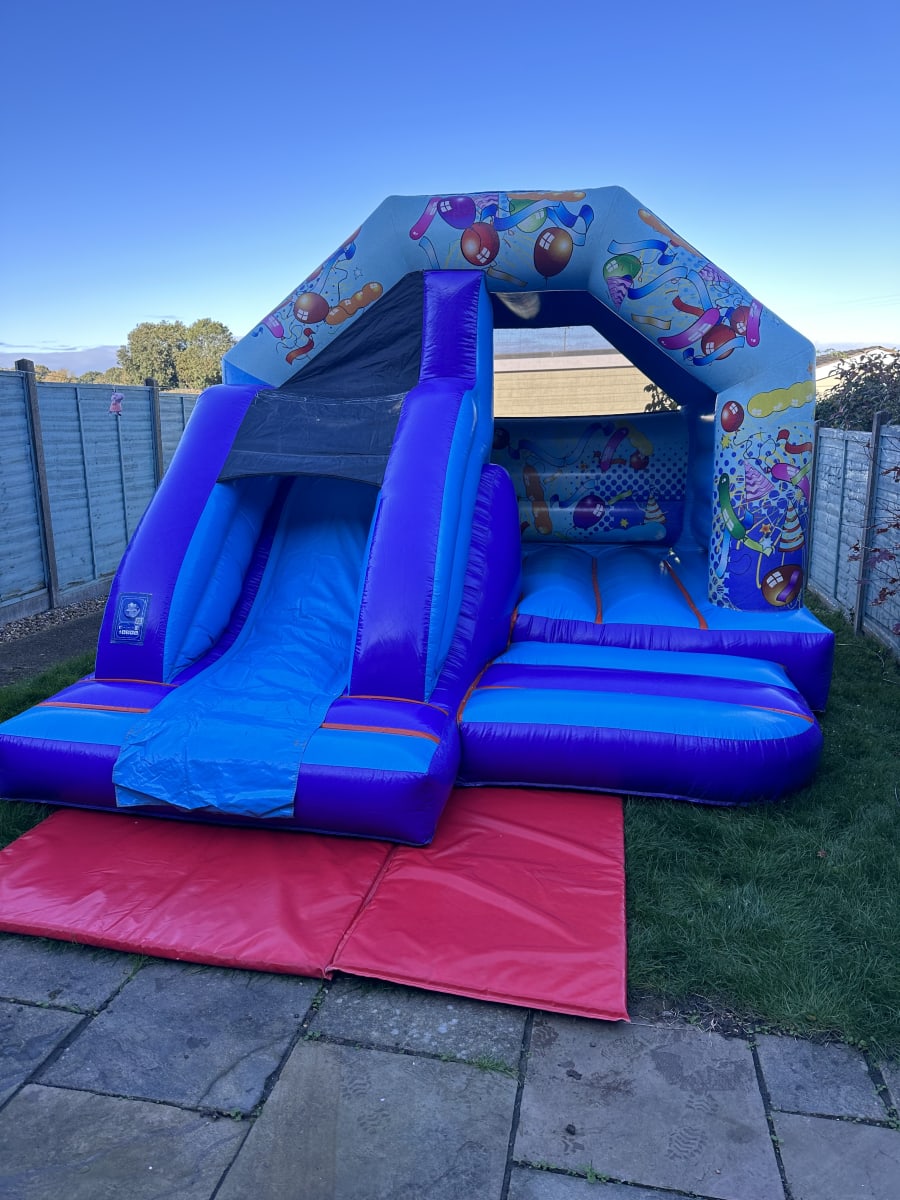 Here is our amazing 13ft x 16ft colourful blue party slide