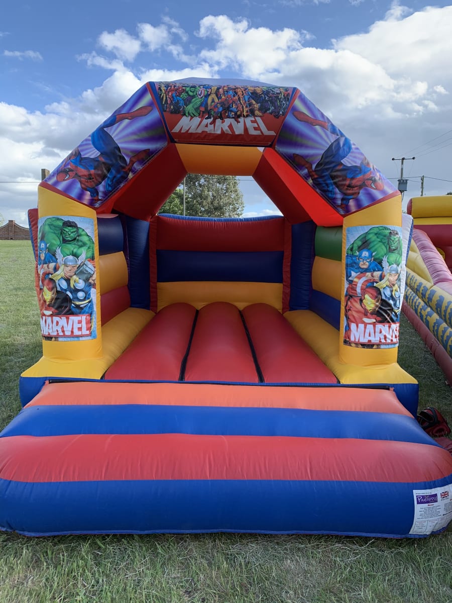 Our marvels castle is available for small to medium sized gardens and comes complete with a built in rain/sun and its featuring all your favorite Superheros.