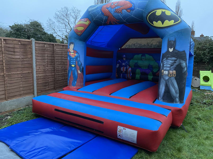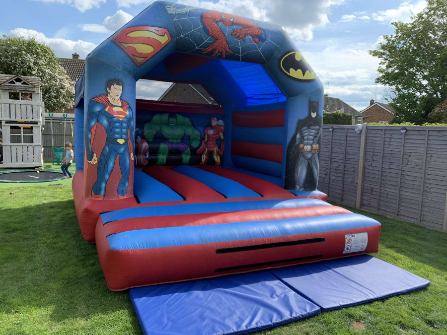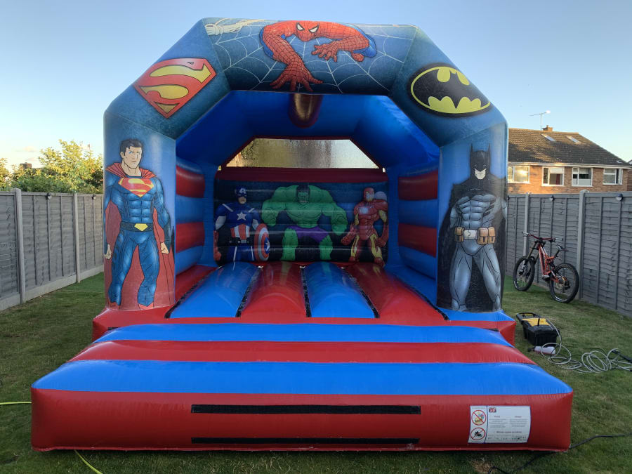 Here is our amazing superhero castle Bring your party to life with our Superhero Bouncy Castle – the perfect inflatable for little heroes and action fans! Featuring bold, colourful superhero artwork and an exciting design, this bouncy castle is guaranteed to be a hit at birthday parties, school events, and fun days.