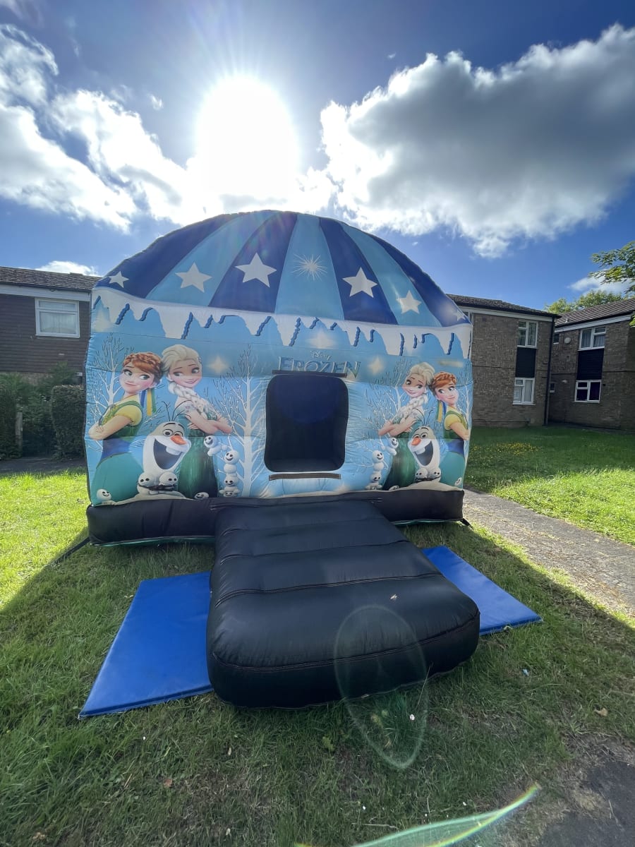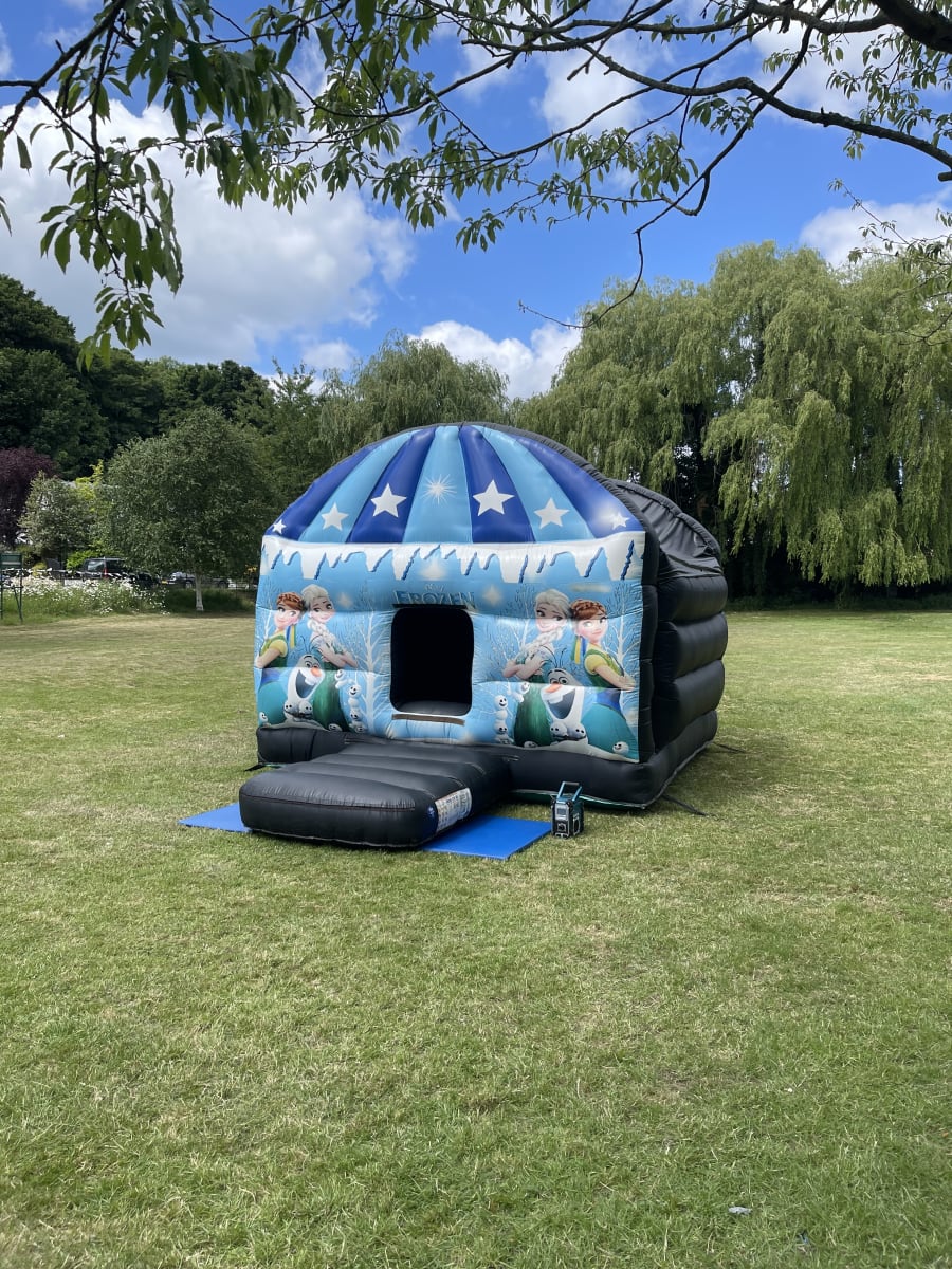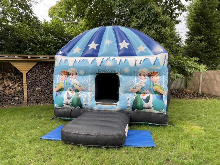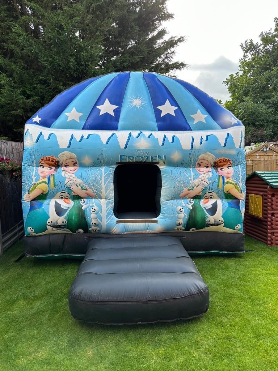 Our frozen disco dome Castle is available for small to medium sized gardens and comes complete with disco lights inside built in rain/sun cover.