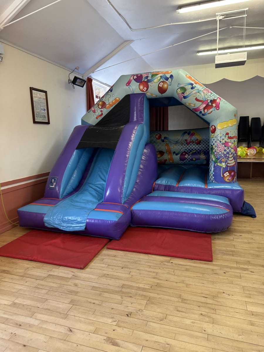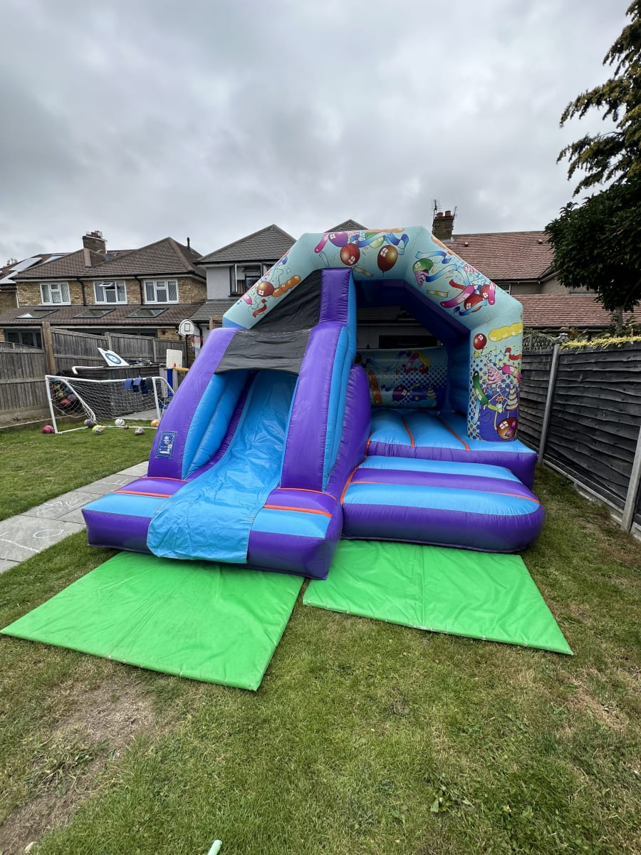Here is our amazing 13ft x 16ft colourful blue party slide