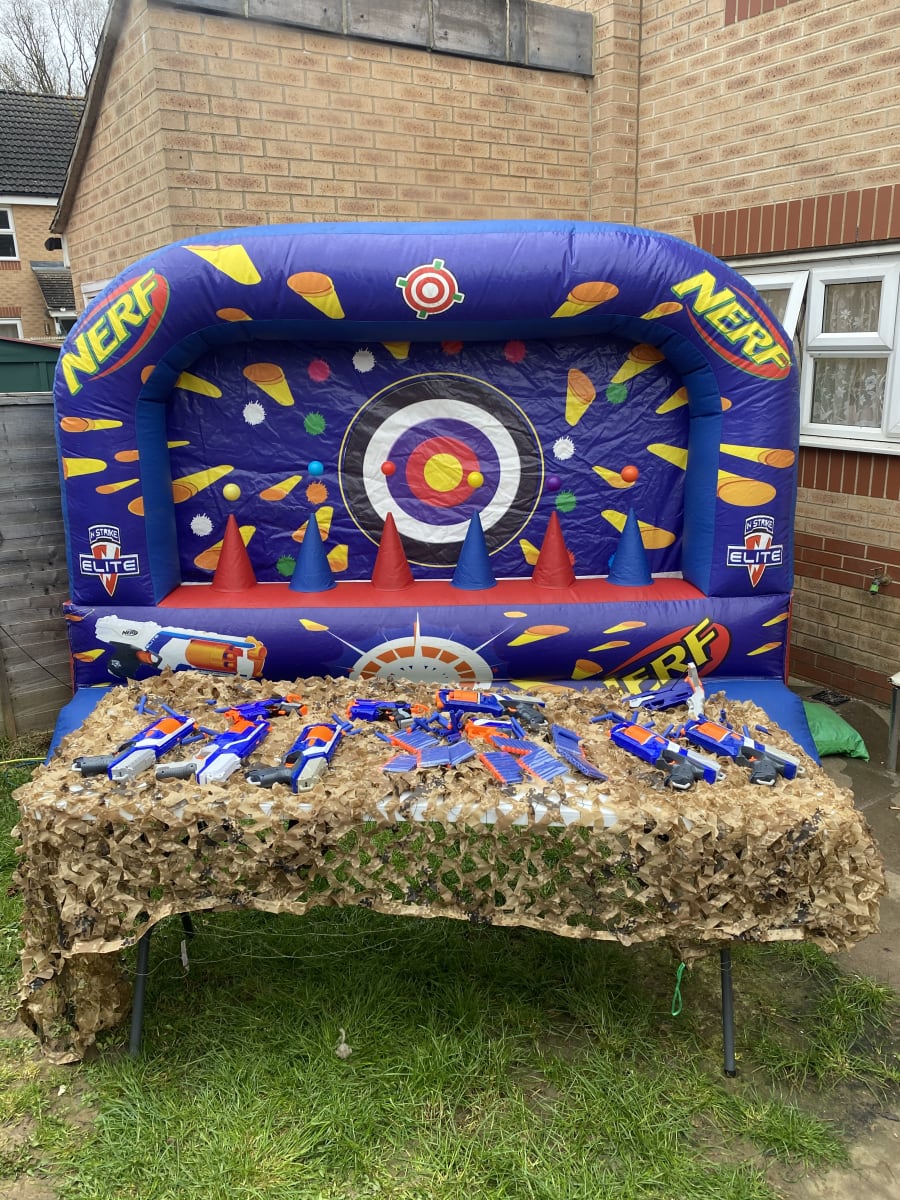 Our nerf shooting range is available for small to medium sized gardens and comes complete with guns and bullets