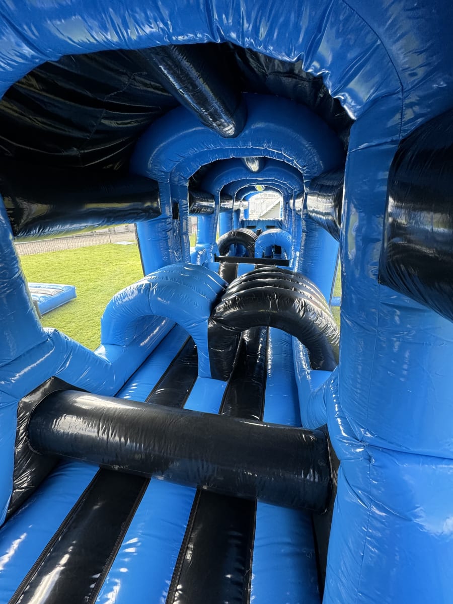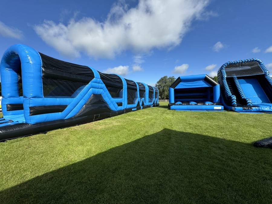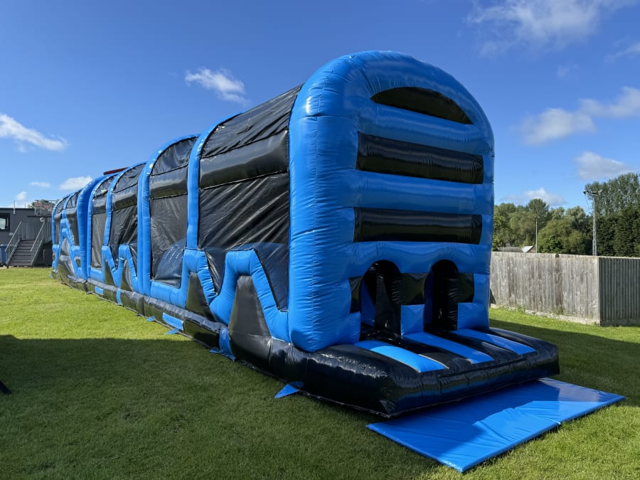 Assault Course Hire - blue and Black 70ft Inflatable Obstacle Course